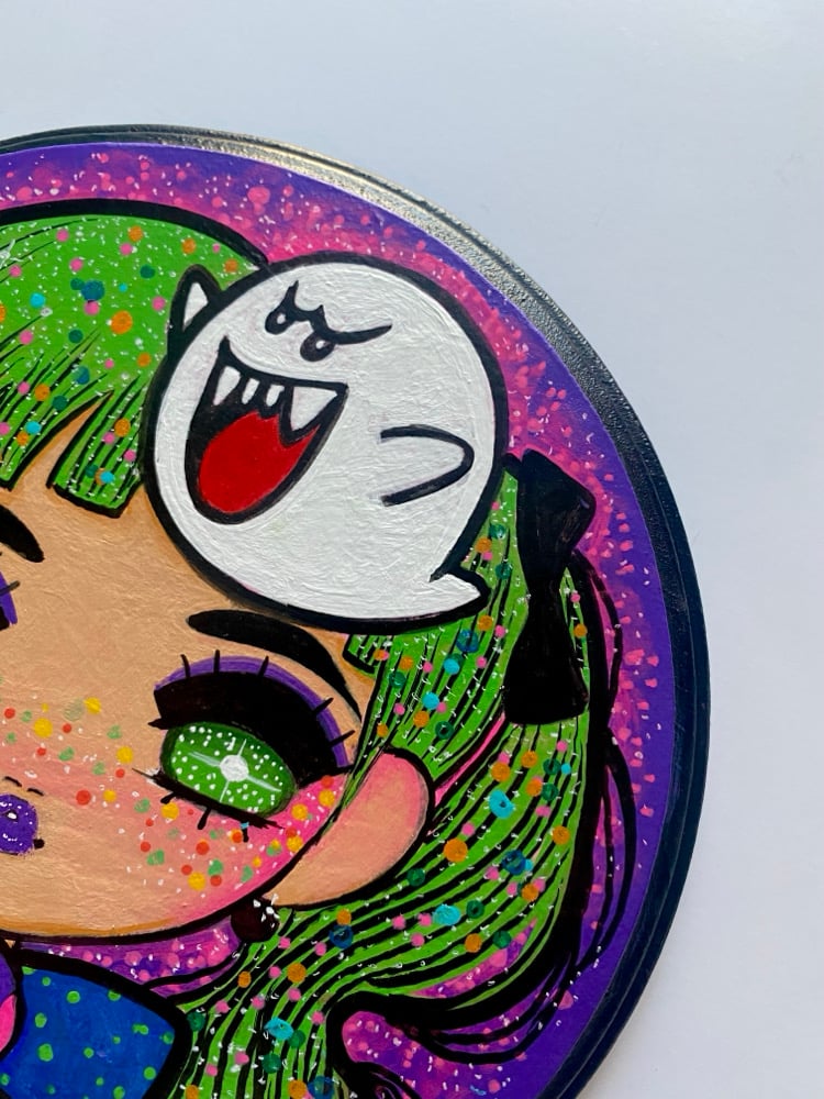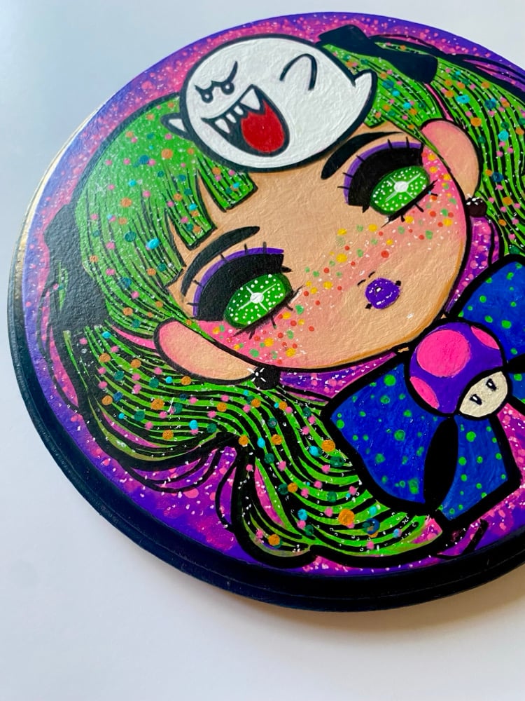 Acrylic painting on wood measuring 9”