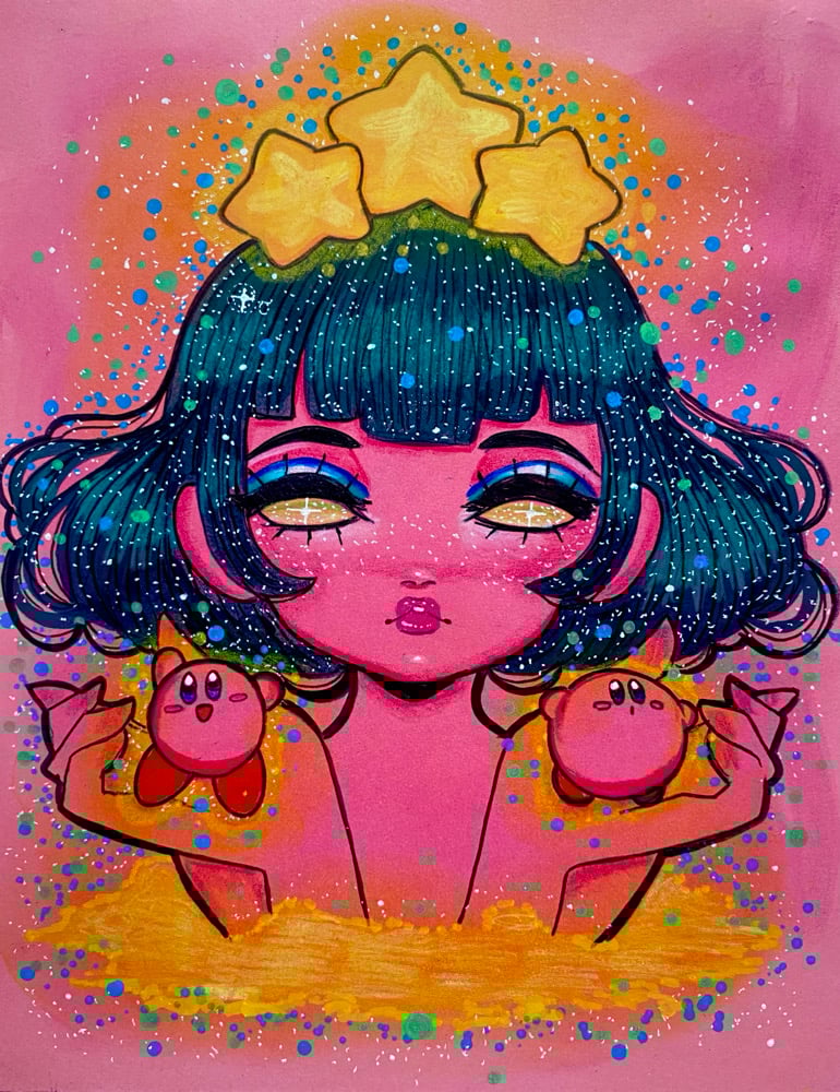 Mixed media illustration on toned paper measuring 8.5”x11”