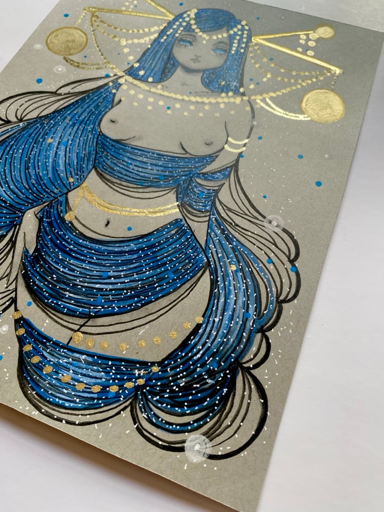 Mixed media illustration on toned paper measuring 8.5”x11”